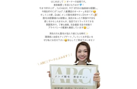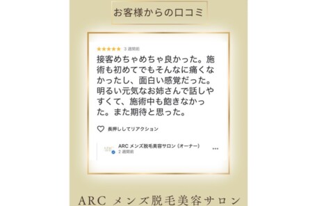 長年悩んでいたひげ剃り負けがきっかけで、ARC メンズ脱毛美容サロンに通い始めました。 最初は不安もありましたが、スタッフの皆さんが親身になって相談に乗ってくれ、…