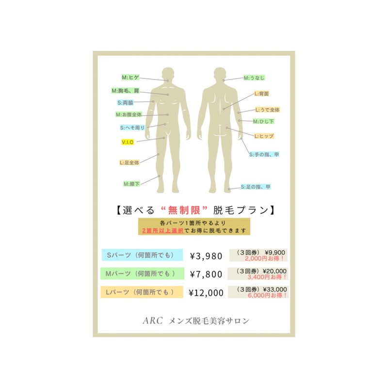 S、M、L各パーツ1箇所を脱毛するよりも、